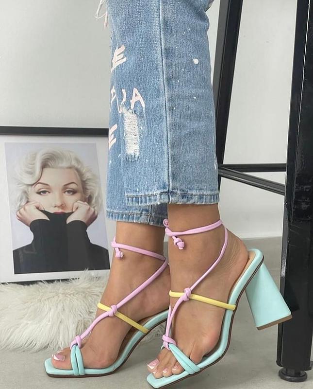 Tacon 7 1/2 azul bebe combinado x amarillo x lila